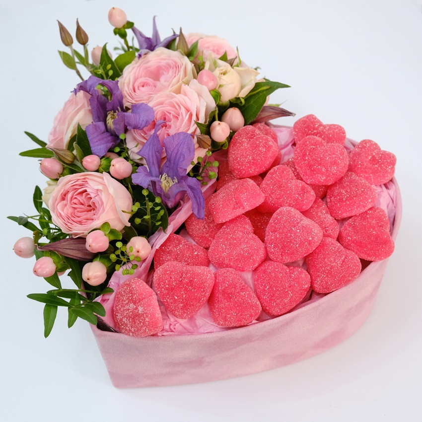 Коробка сердце: мармелад и кустовые розы