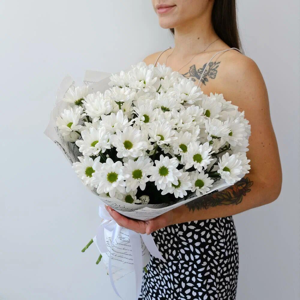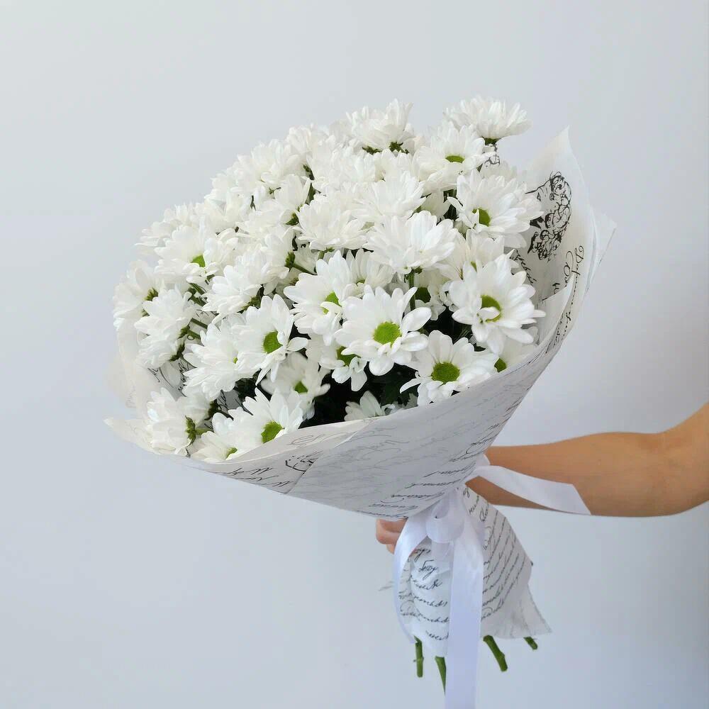 Букет хризантемы ромашки будет радовать вас своим видом и ароматом на протяжении долгого времени.