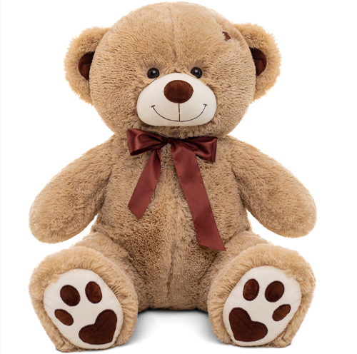 Кофейный плюшевый средний мишка имеет высоту 110 см., в сидячем положении 60 см.