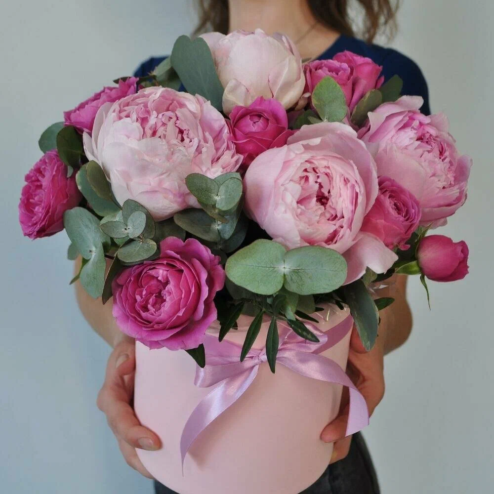 Ароматный букет розовыми пионами Сара Бернар и кустовыми пионовидными розами в коробке - это настоящий экспресс утонченных чувств, способный преобразить любой интерьер и подарить улыбку близкому человеку.