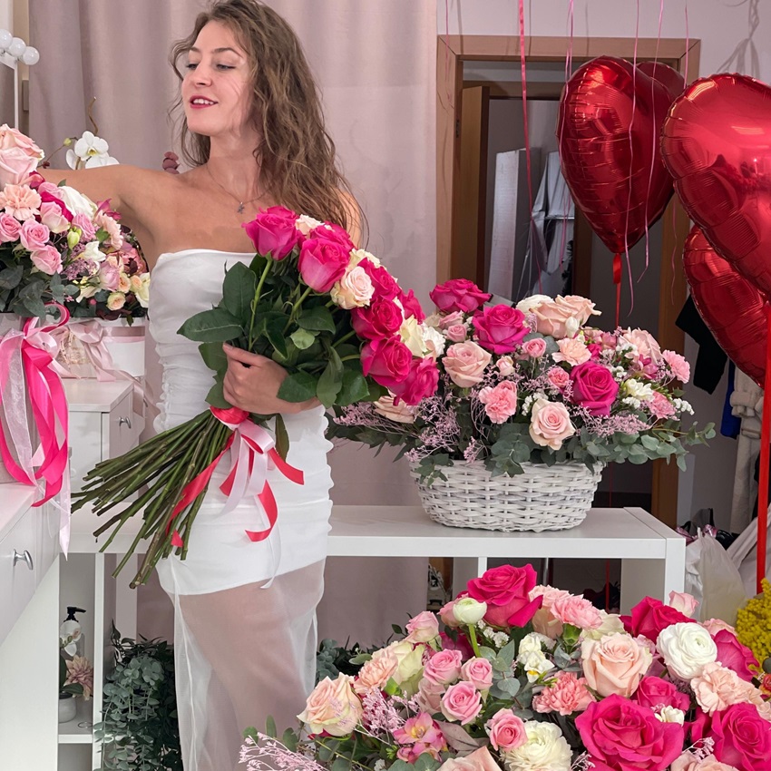 Комната цветов розы и пионы "Единственной и неповторимой"