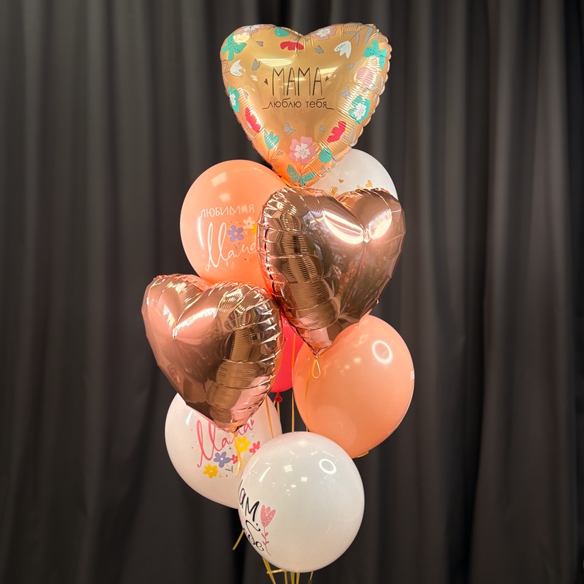 Сет шаров для мамы в оттенках розового золота с пастельными шариками с надписями.