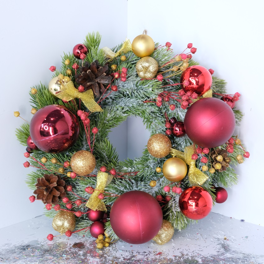 Новогодний венок с красными шариками (искусственный)