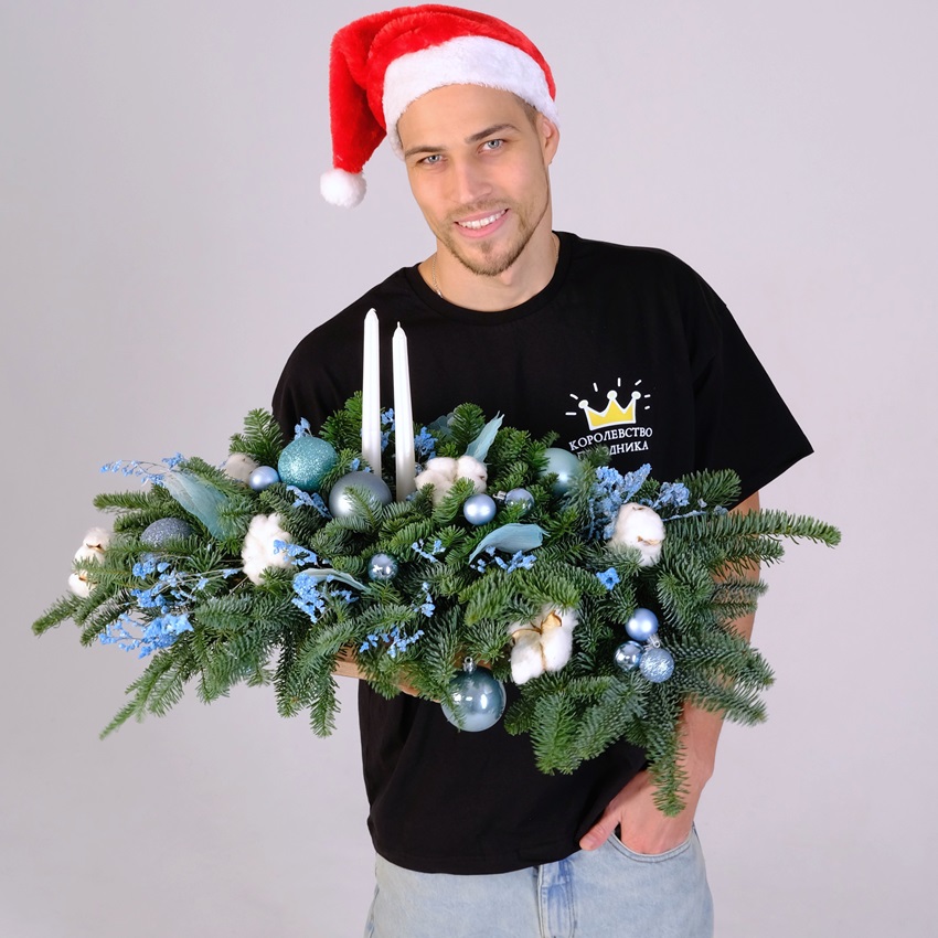 Шикарная новогодняя композиция из нобилиса со свечами "Frost Kiss"