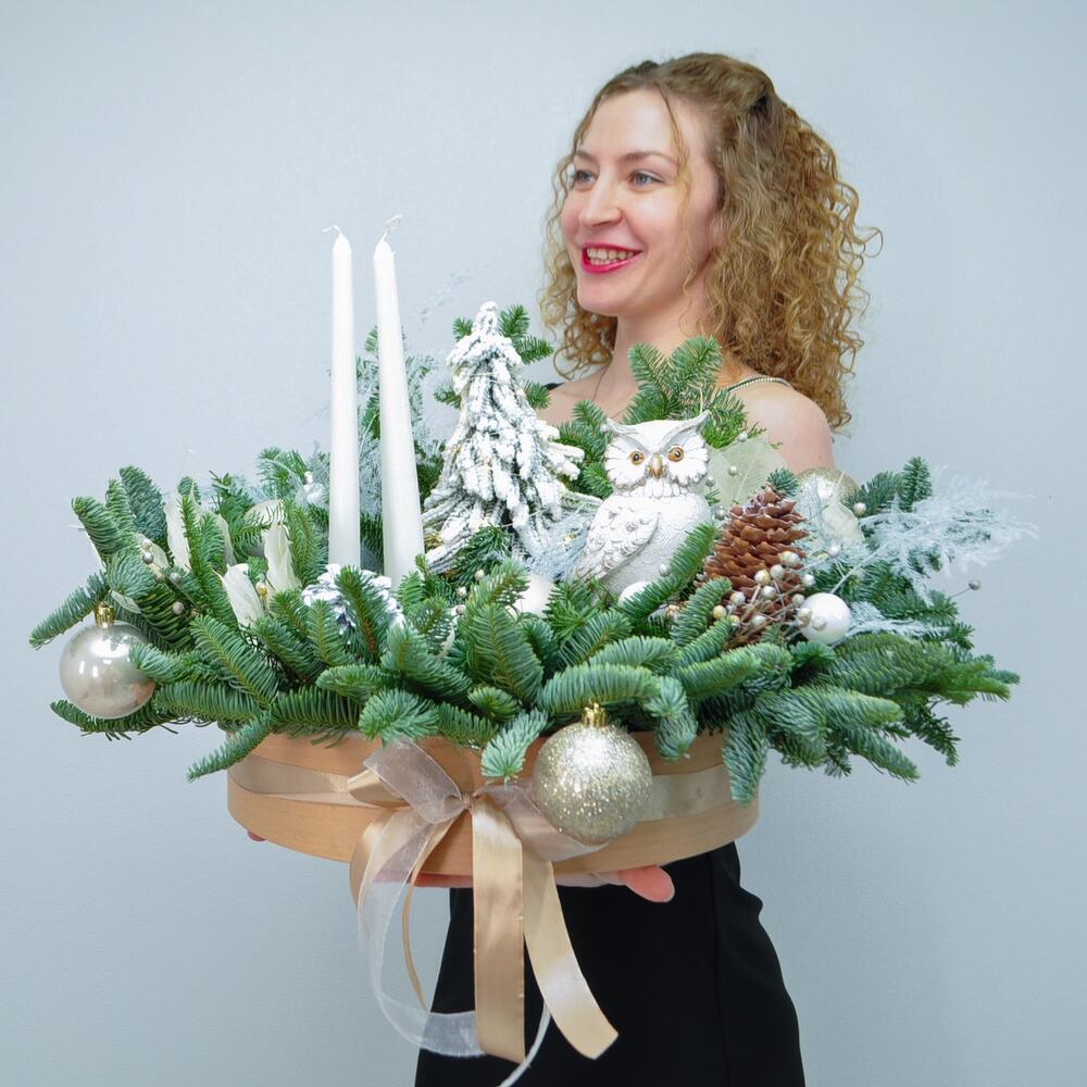 Новогодняя композиция из нобилиса со свечами «Сова из Сказки»