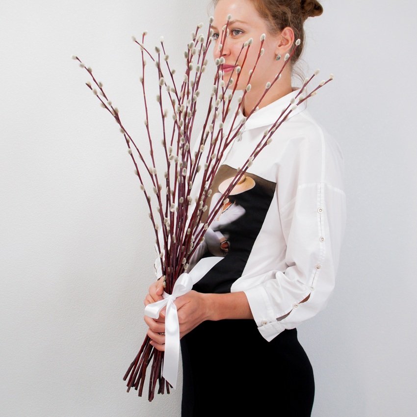 Символика букета заключается в глубоком культурном и религиозном значении вербы. В православной традиции верба используется в церковных обрядах и домашних ритуалах, символизируя воскресение и надежду на жизнь вечную.
