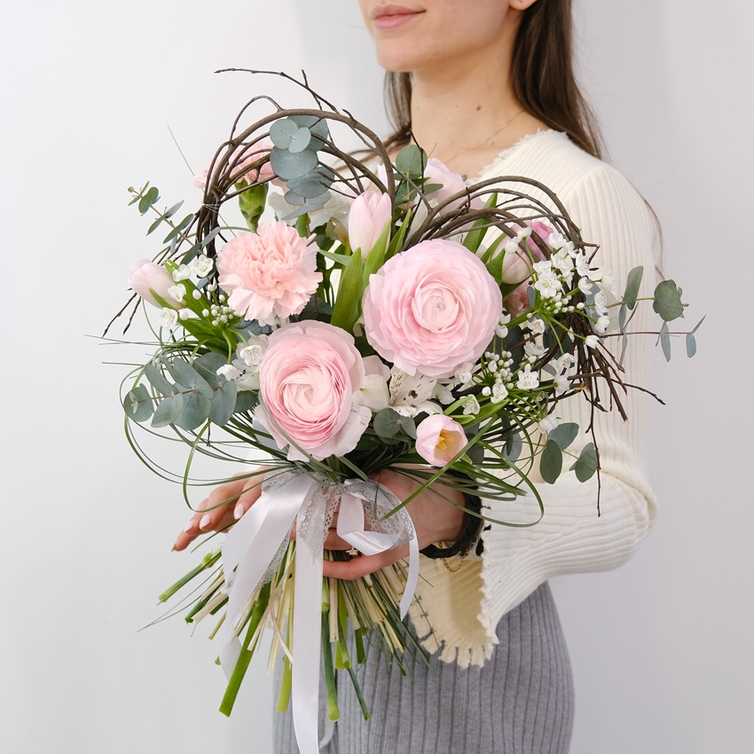 Ранункулюсы и тюльпаны в букете «Валентинка»