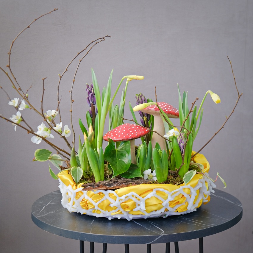 Садик с первоцветами и сувенирами: нарциссы, тюльпаны и гиацинты "Осторожно: весна!"