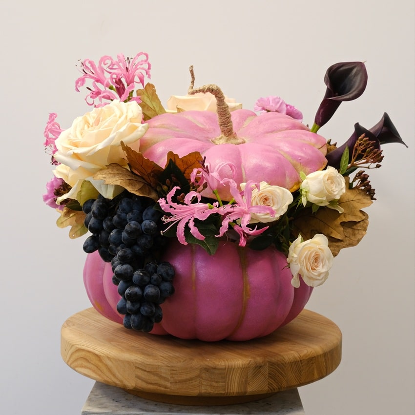 Цветочная тыква! Розовая тыква с пионовидными розами и каллами