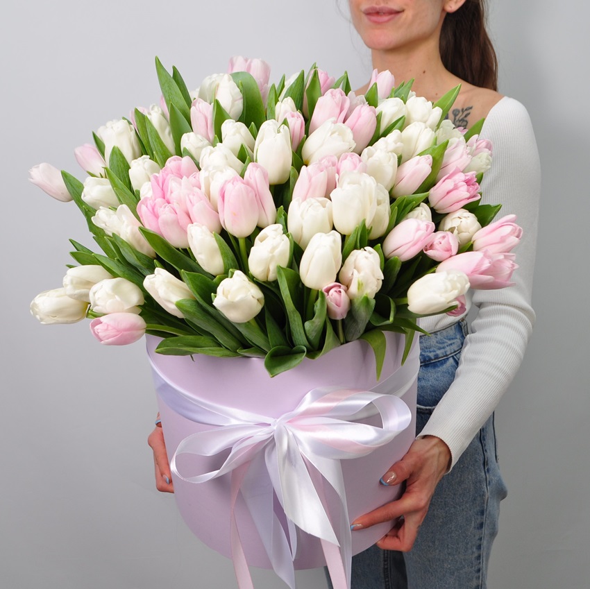 Тюльпаны в коробке (101 тюльпан)