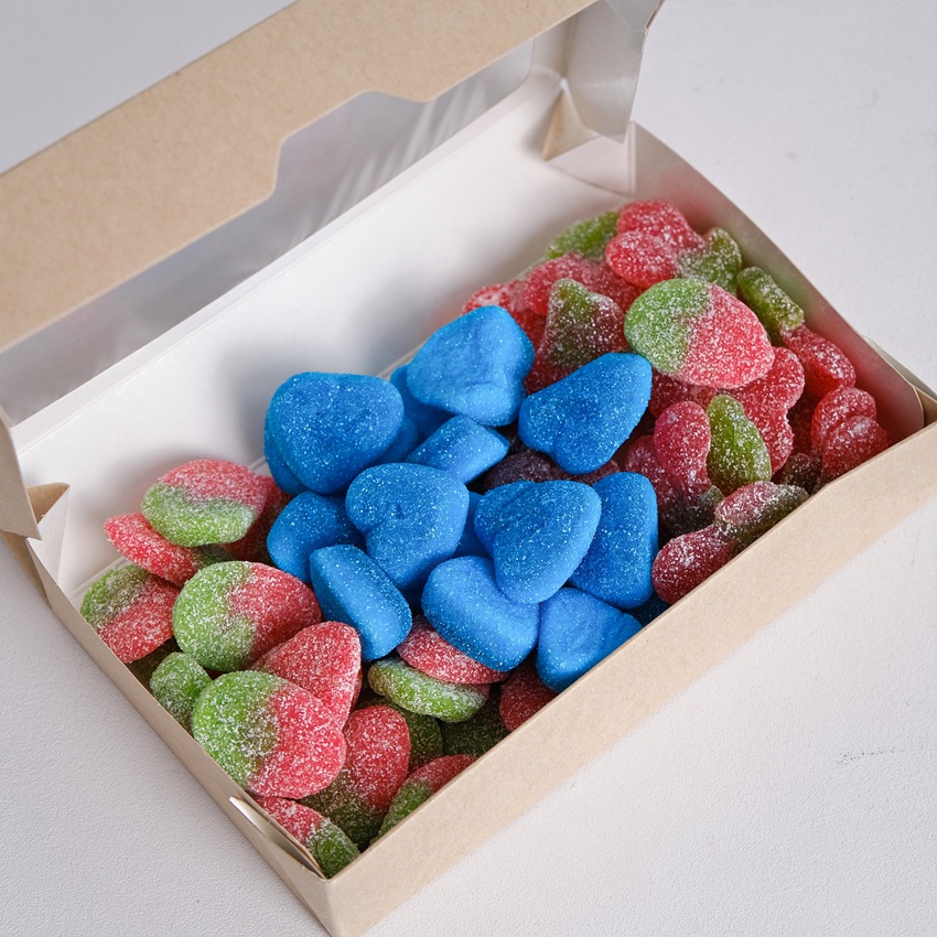 В составе: кислый сердечки и клубника. Вес: 500 гр.