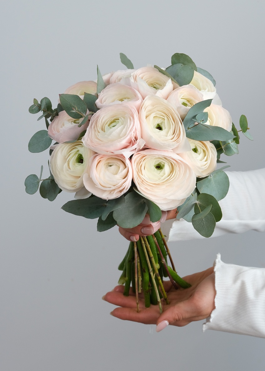 Букет невесты с ранункулюсами и эвкалиптом "Сладкий шёпот"