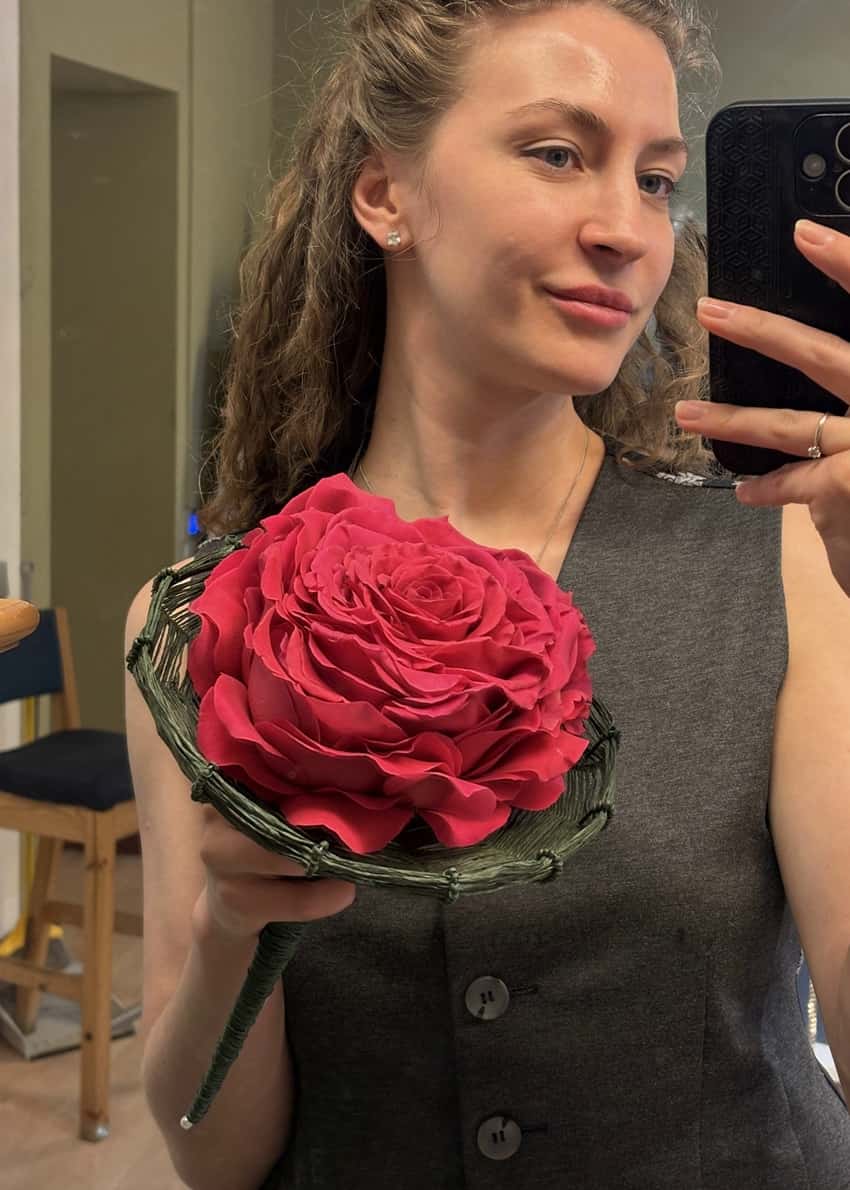 Гламелия - старинный способ аранжировки букета: использовались бутоны гладиолуса для создания одного крупного цветка в виде камелии. На фотографии представлен вариант Розамелии - из лепестков роз создана эффектная крупная розы.