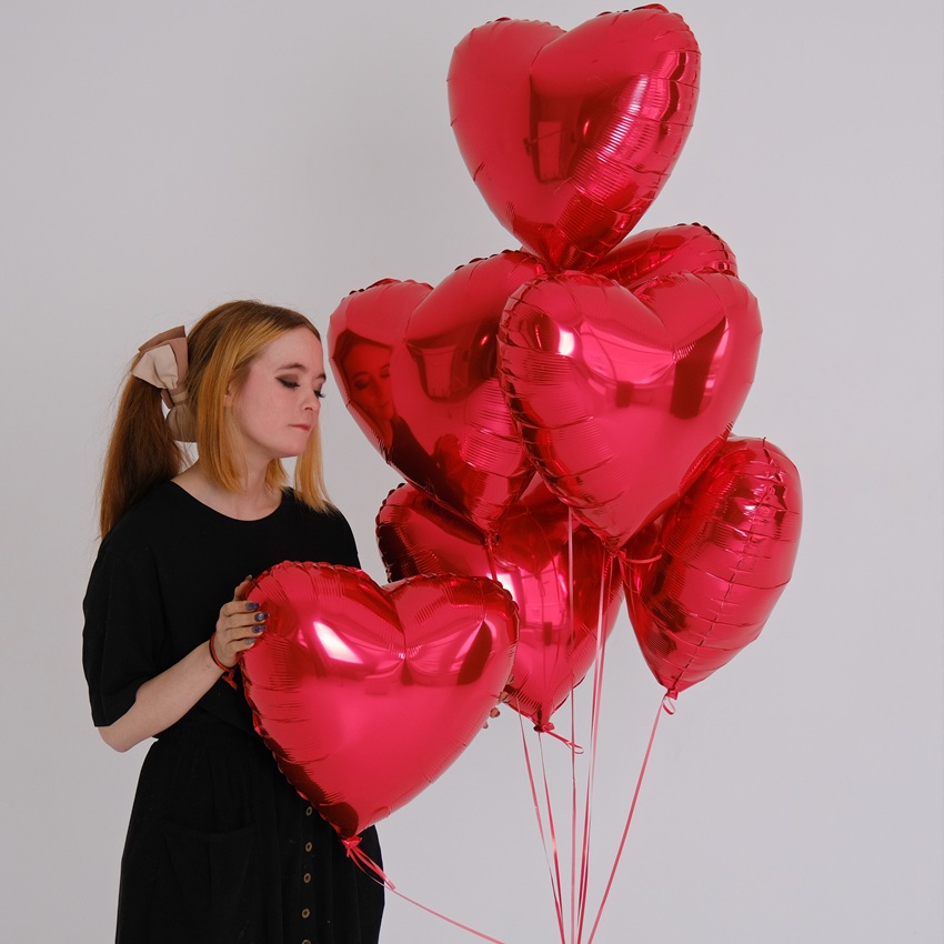 Воздушные шары фольга Сердца 45 см. 7 штучек