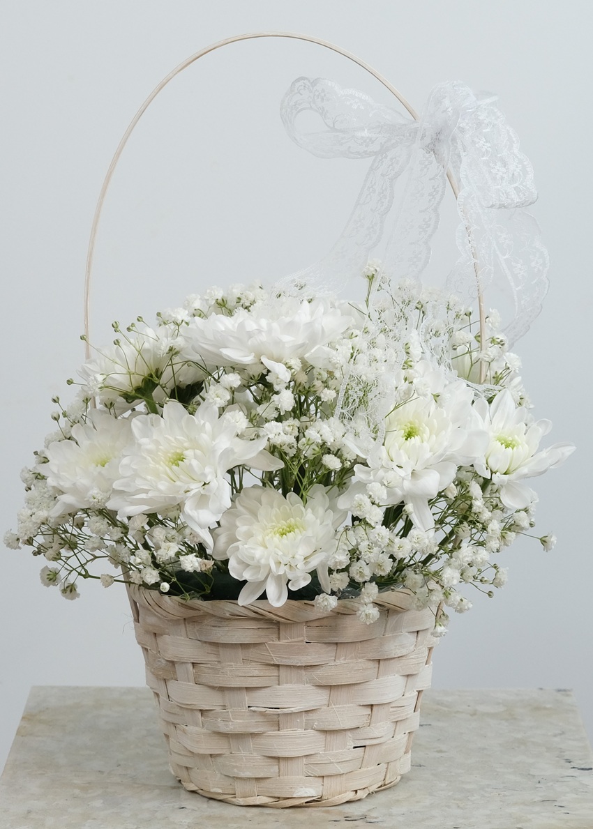 Хризантема и гипсофила в мини корзинке. Цена от 5 шт.